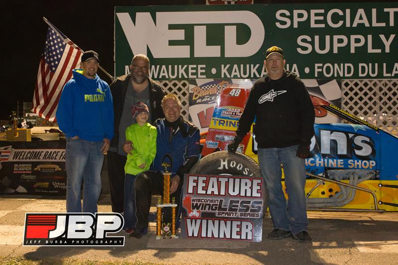 20 drivers for the Wisconsin wingLESS series presented by the IRA showed up to do battle on the high banks of the Beaver Dam Raceway. The field was a mix of experienced series regulars like Doug Schenck and the Koubas as well as drivers who were brand new to not only the series but racing cars in general. Qualifying was dominated by returning regulars, as Jake Kouba would collect fast time followed by Jordan Mattson. 3rd quick would be claimed by series newcomer Rod Colburn, nephew of 1975 and 76 IRA champion Dick Colburn. The top five was rounded out by Allen Hafford and Jimmy Kouba.